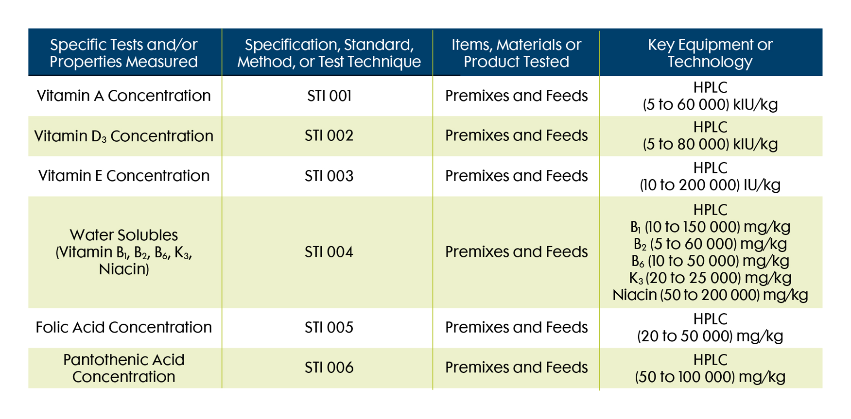 Vitamin testing is very important to us, that is why we maintain our International Organization for Standardization (ISO)/IEC 17025:2017 certification for premix analysis, a specialization rare to the pet food industry, by completing proficiency testing throughout the year conducted by ISO-certified vendors.