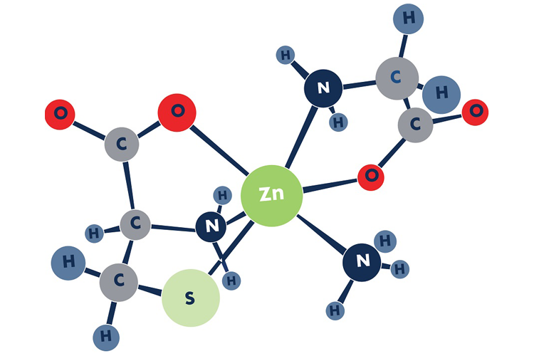 Supplemental trace minerals can be delivered in many forms – inorganic oxides, inorganic sulfates, organic complexes, and organic chelates are the most commonly used. Organic escorts protect trace minerals through digestion. Simple complexed trace minerals are less stable since they are bonded by only one attachment point. Chelates, by contrast, such as Optimin Organic Trace Minerals have greater stability due to at least two attachment points to their organic escort, significantly increasing the probability that the trace mineral will remain protected.